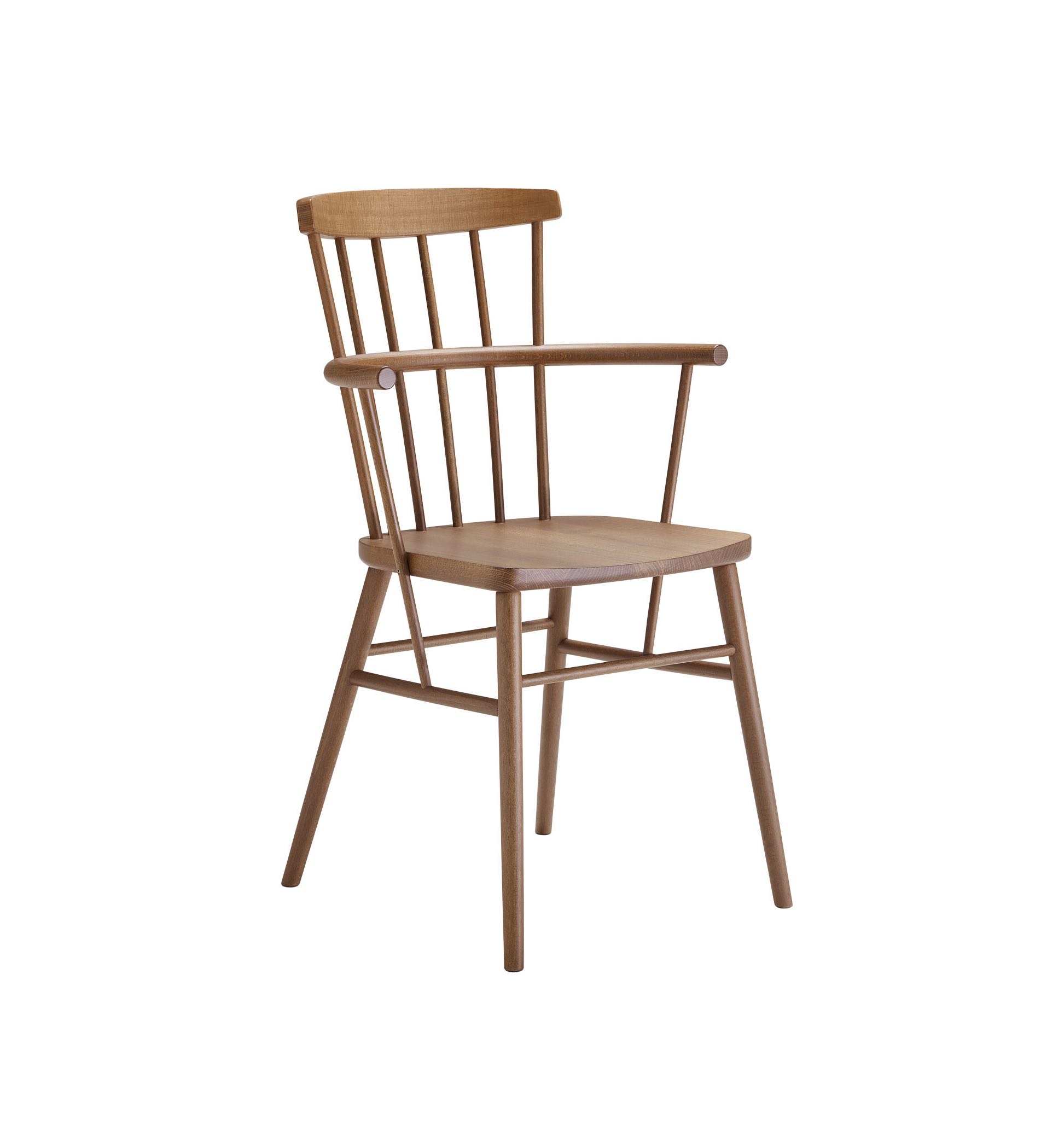 Poltroncina Lara in legno di faggio verniciata varie finiture legno o verniciata colorata con seduta in legno o imbottita e rivestita a scelta in vari tessuti, similpelle.
