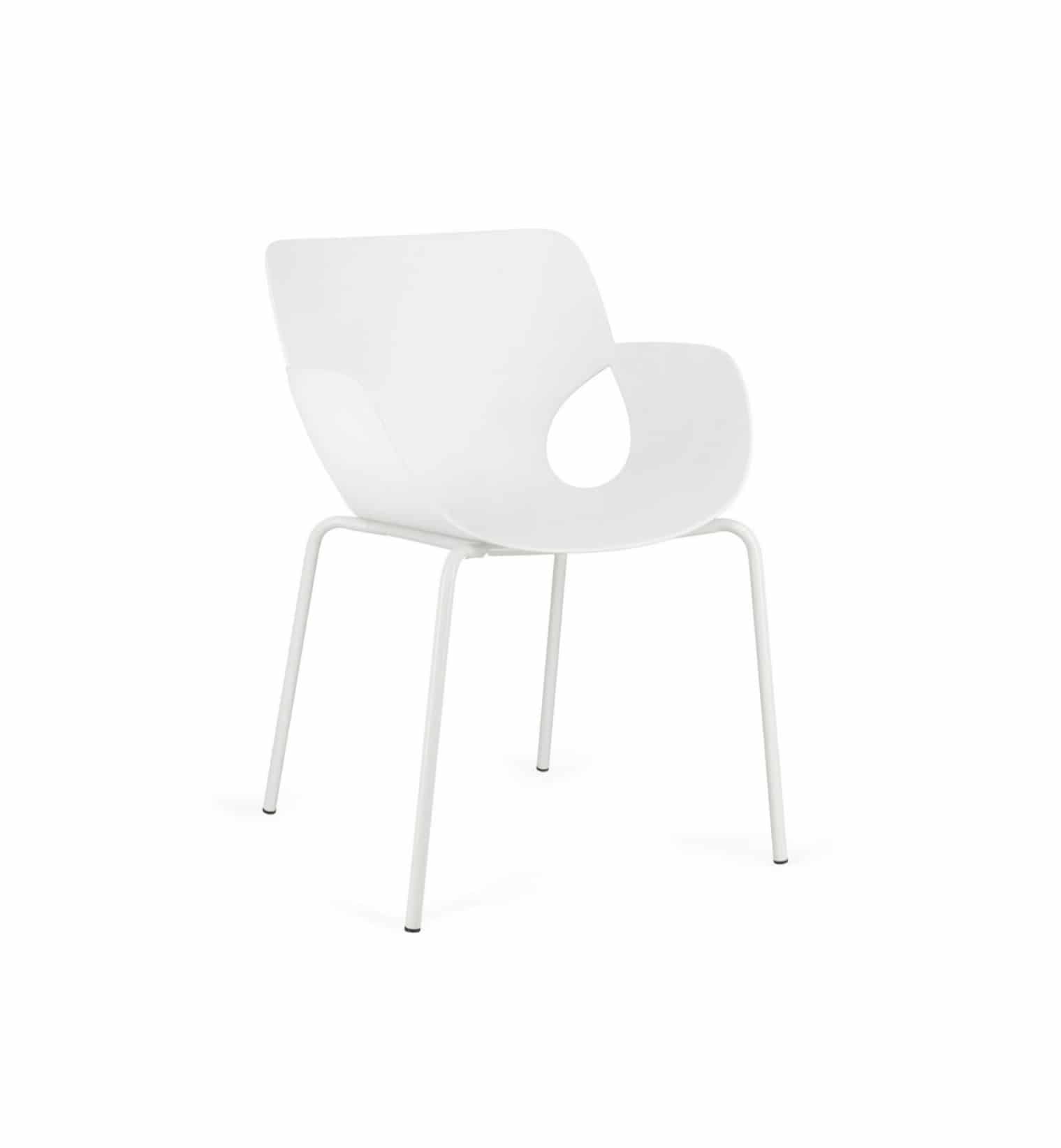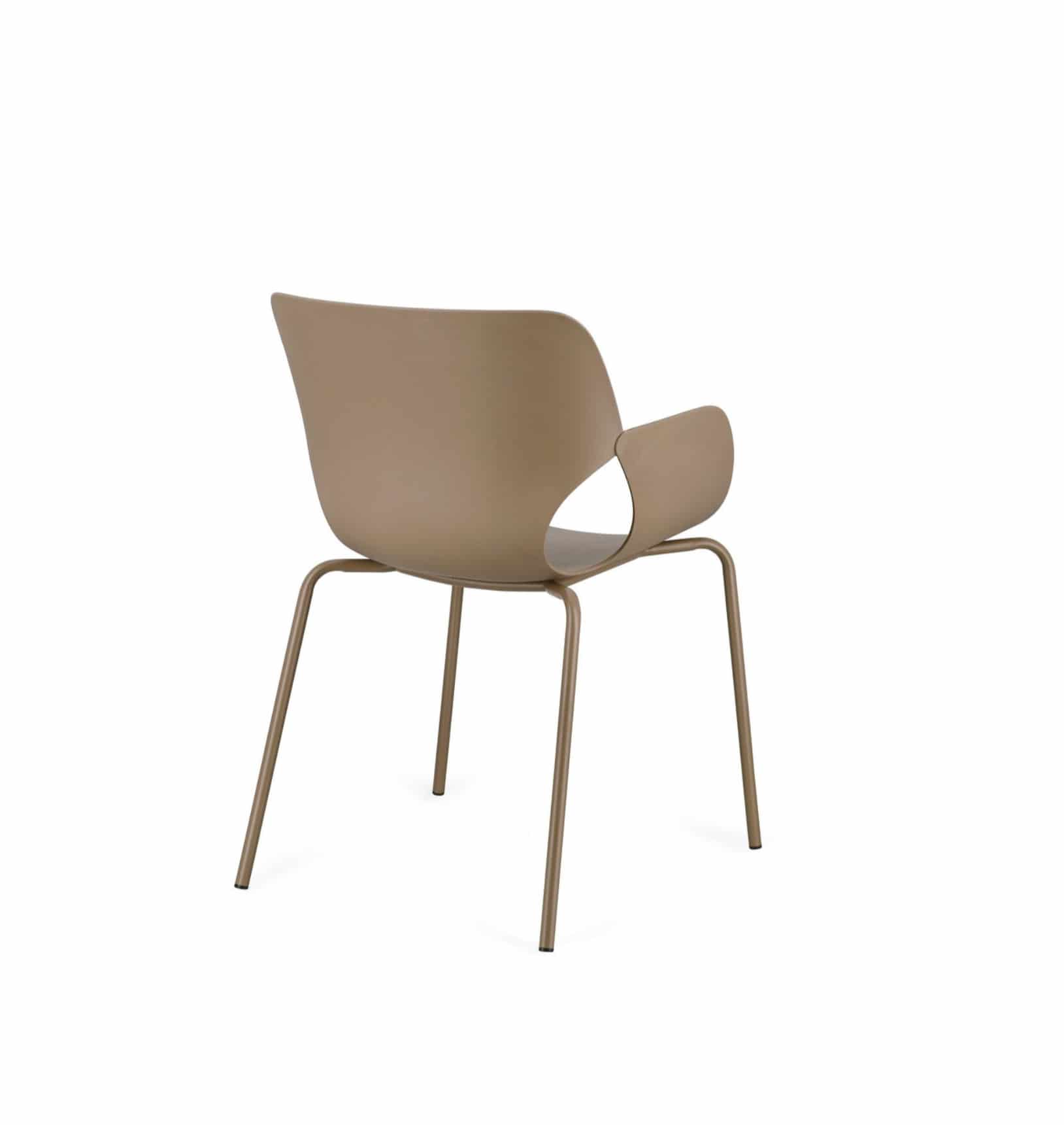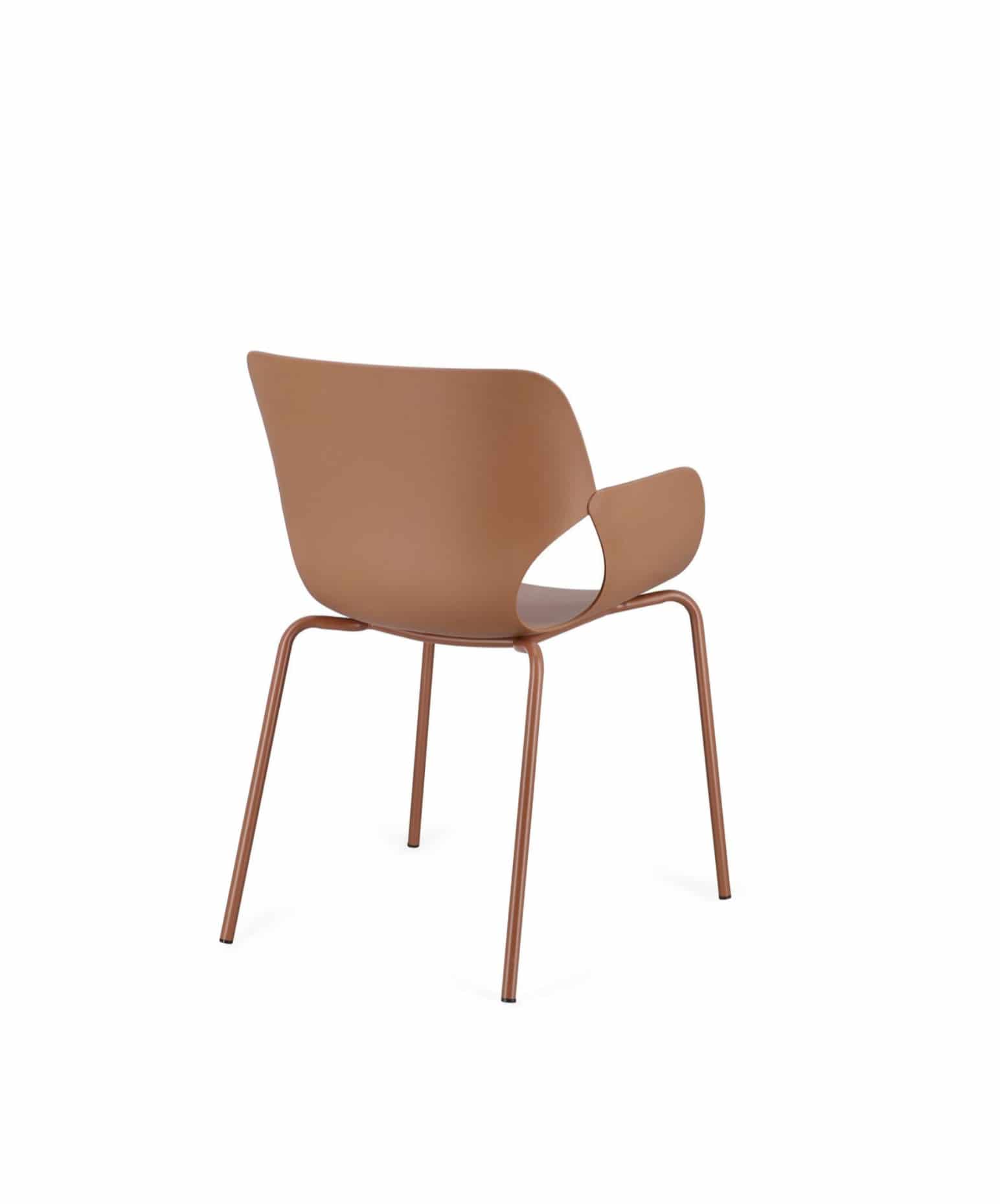 Poltroncina Lennox dalla struttura in polipropilene e gambe in metallo disponibile in vari colori, impilabile, adatta per uso interno.