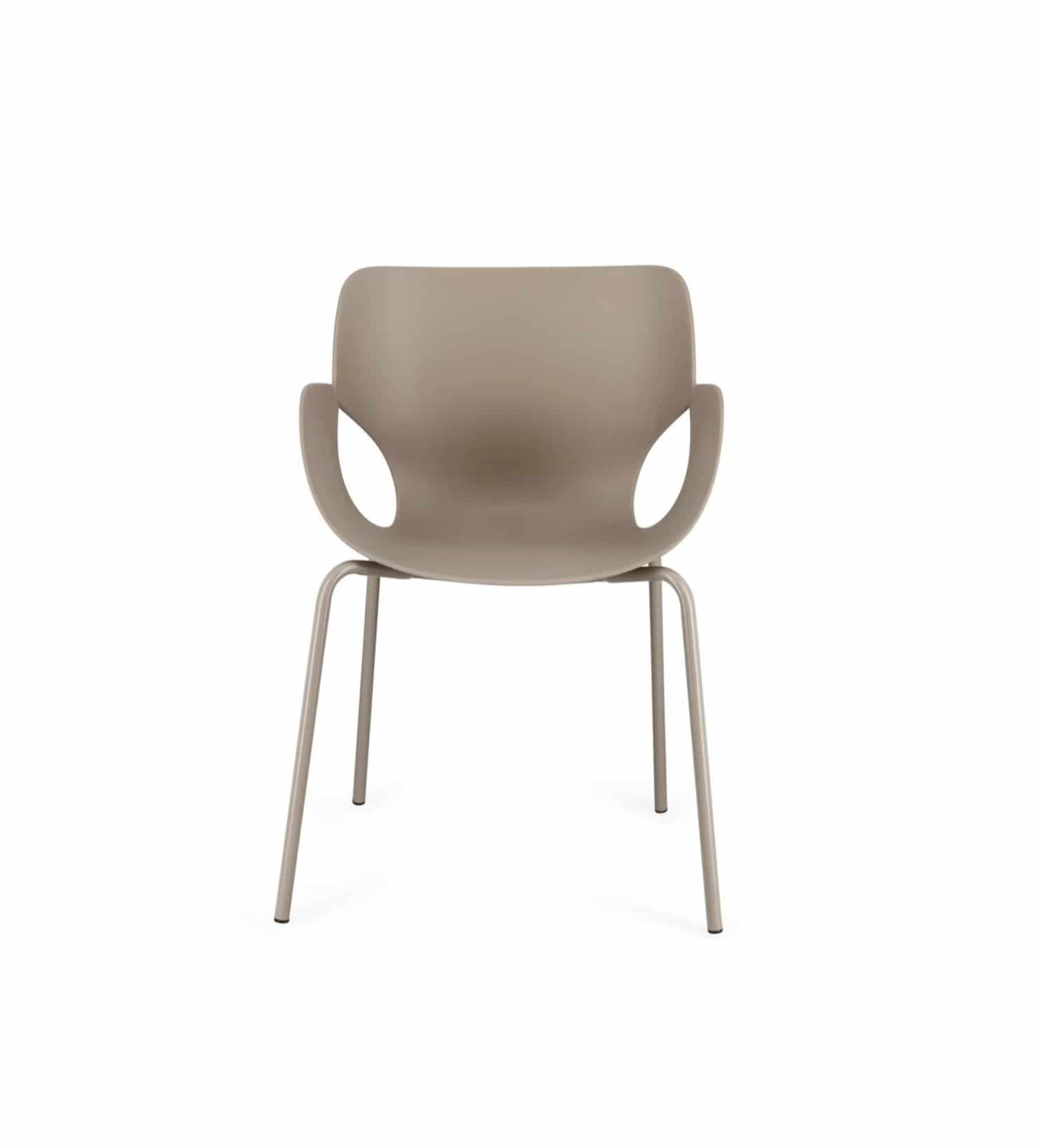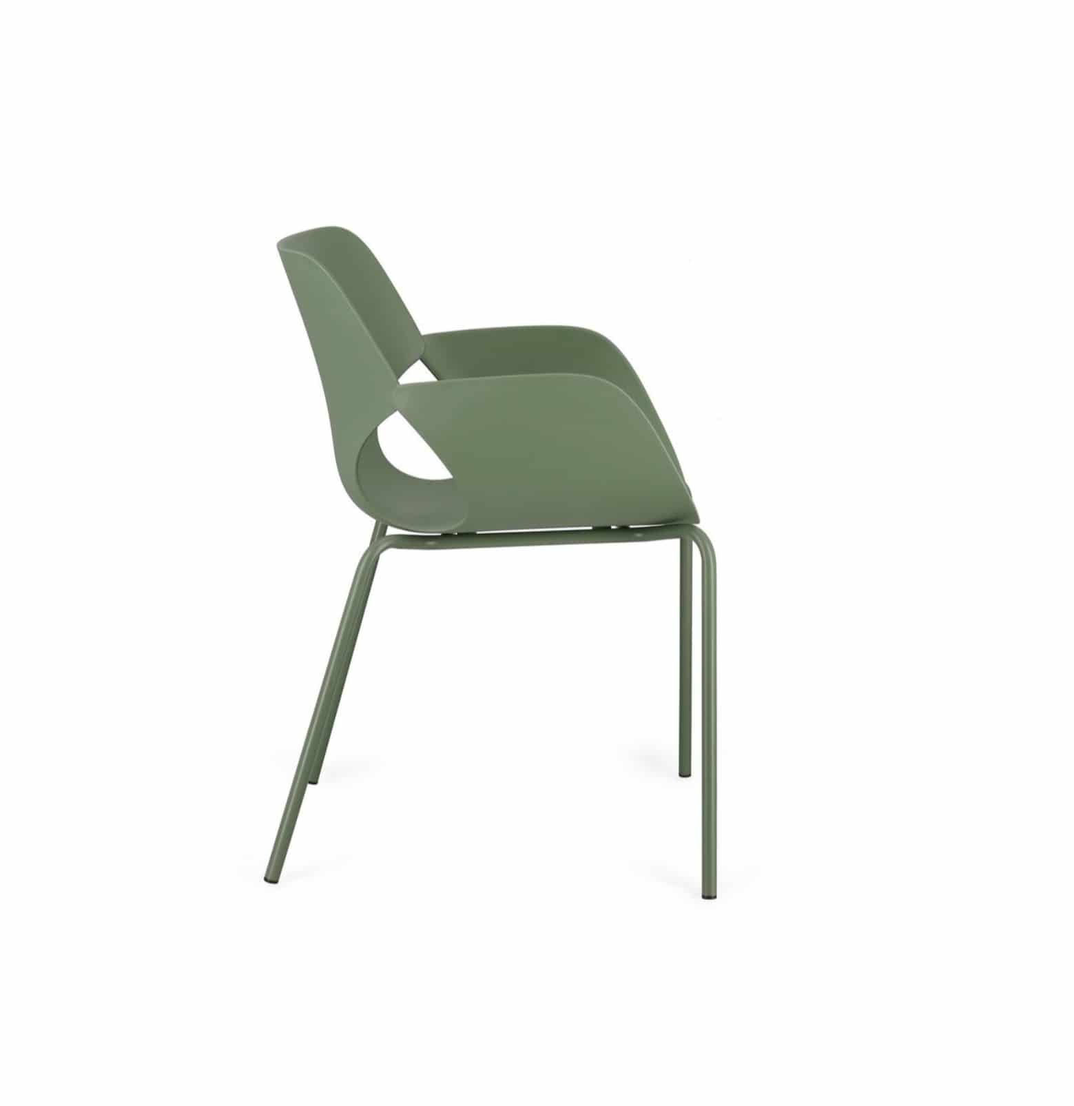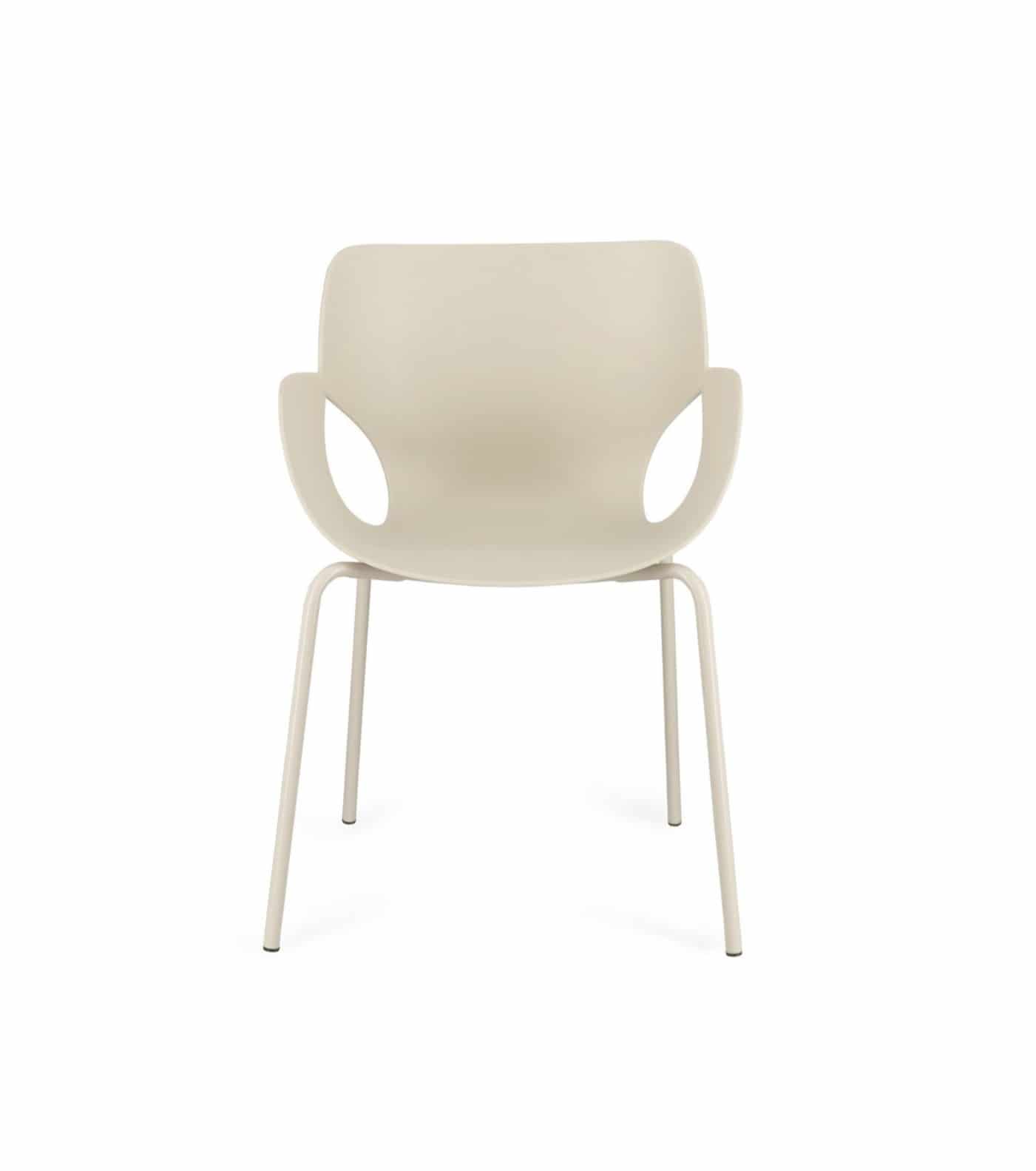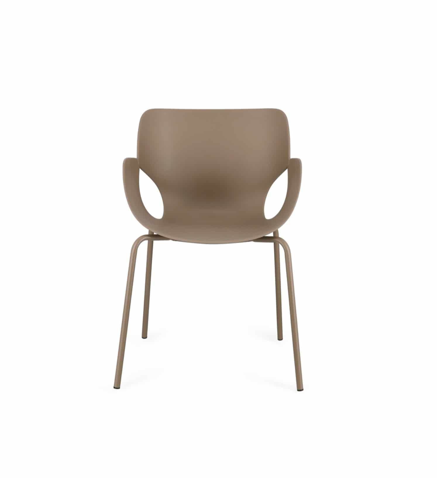 Poltroncina Lennox dalla struttura in polipropilene e gambe in metallo disponibile in vari colori, impilabile, adatta per uso interno.