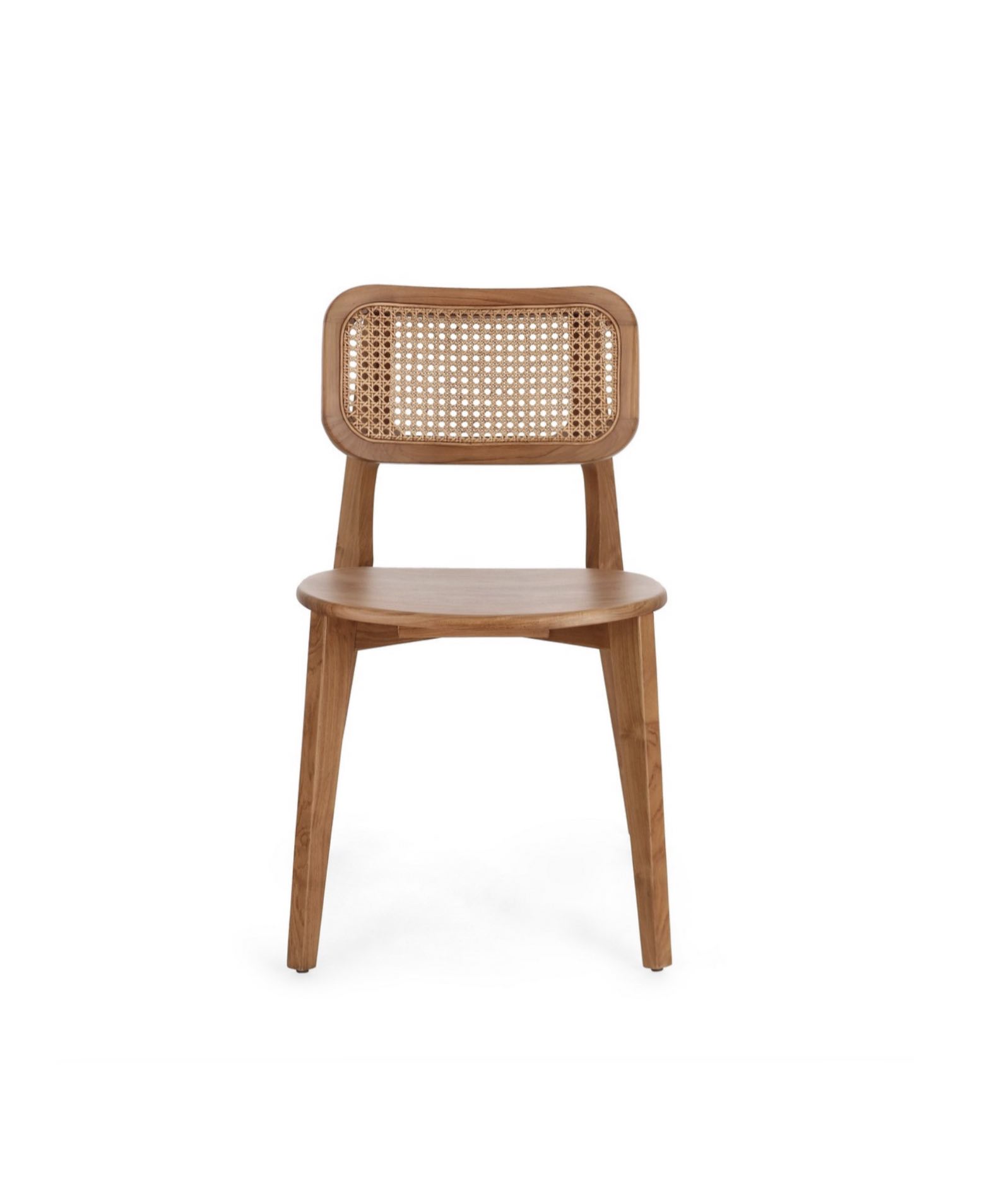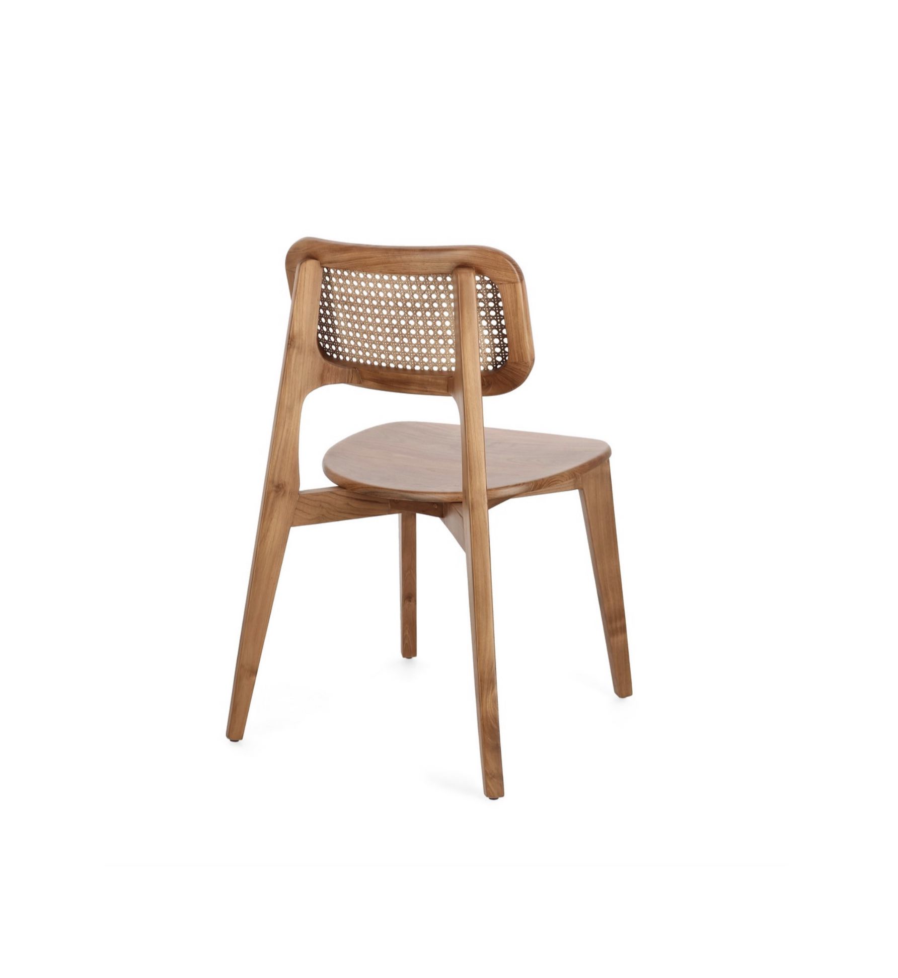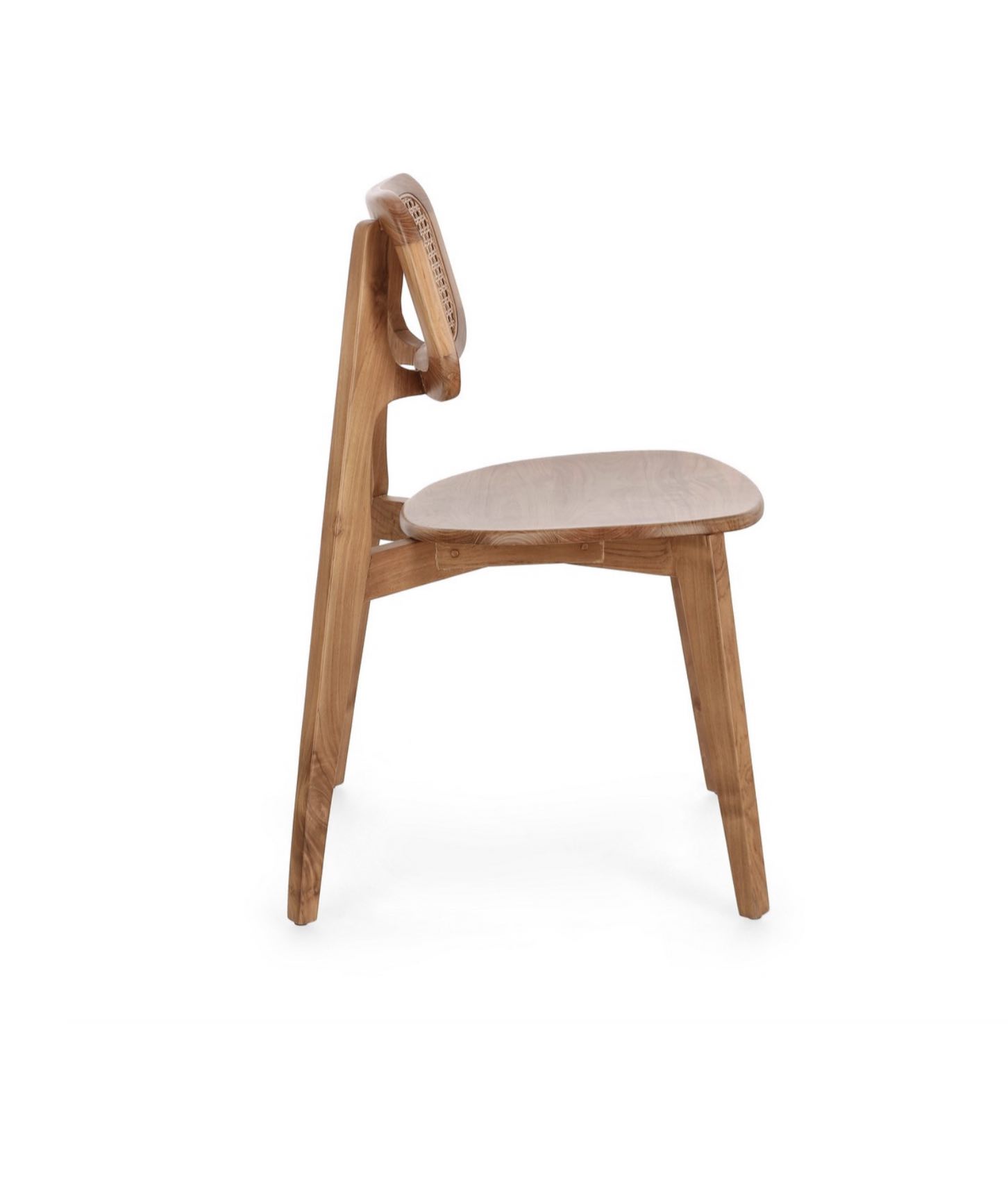 Sedia in legno di teak, verniciata finitura naturale, schienale in rattan., adatta per l’arredamento interno di ristoranti e abitazioni private.