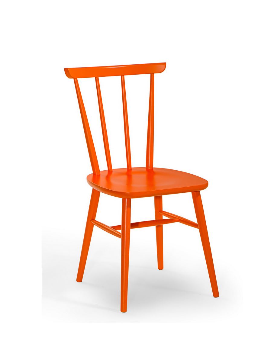 La sedia può essere verniciata in varie finiture legno, colorate anilina o colorate laccate.