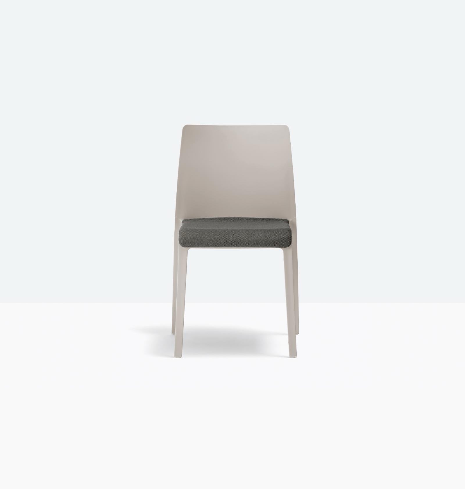 Sedia Volt HB 673/2 Cuscino imbottito e rivestito a scelta, in ecopelle o tessuto in vari colori. adatta per l’arredamento interno ed esterno. Si differenzia per il nuovo schienale alto che rende la seduta ancora più elegante, comoda e accogliente.