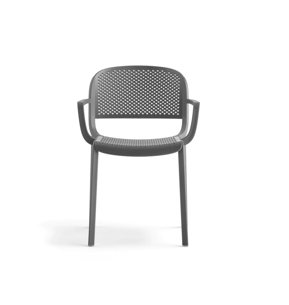 Sgabello Lisa con Seduta e schienale imbottiti con anima in multistrato curvato. Struttura a 4 gambe in acciaio tubolare ø mm 16. Impilabile. Per uso interno.