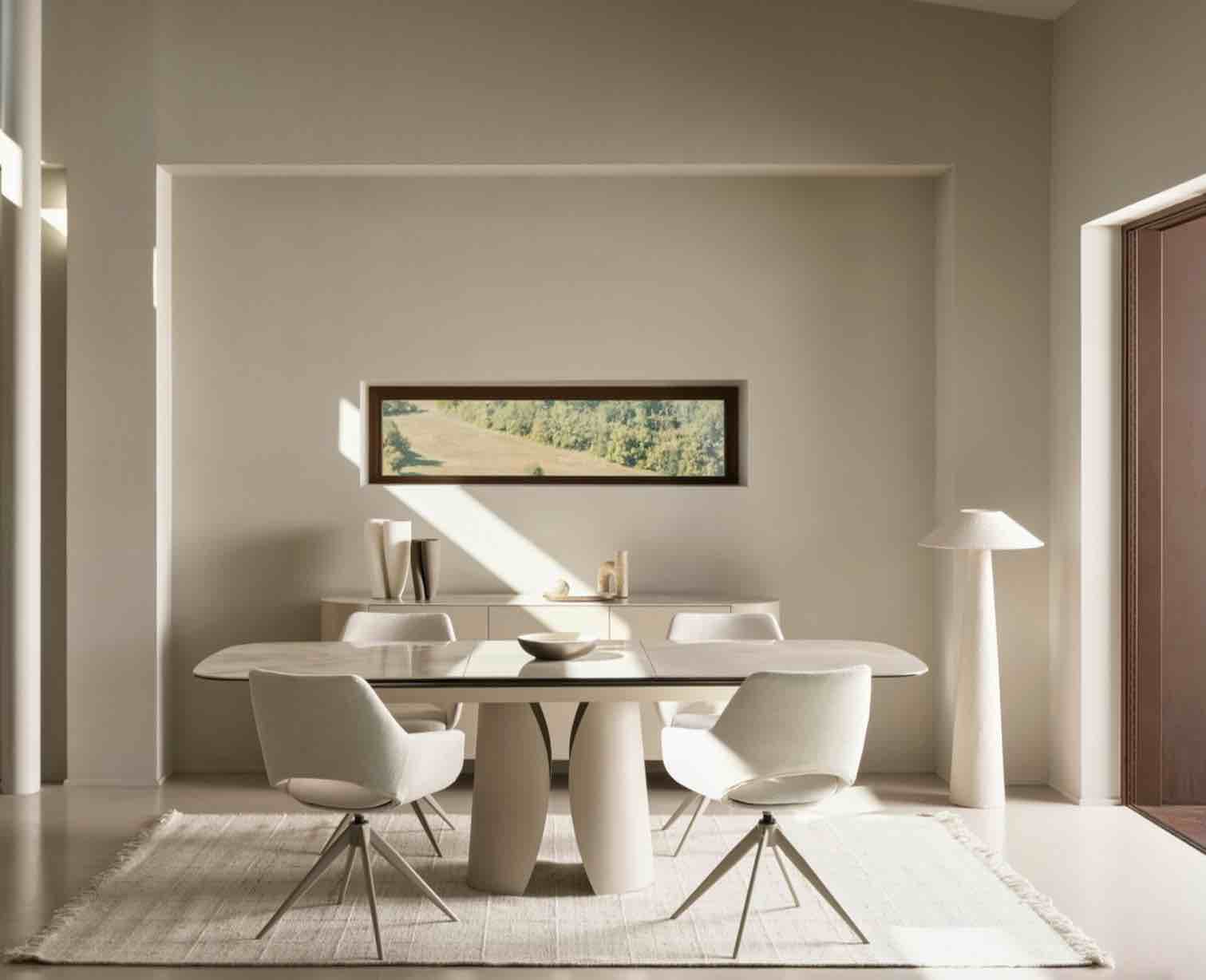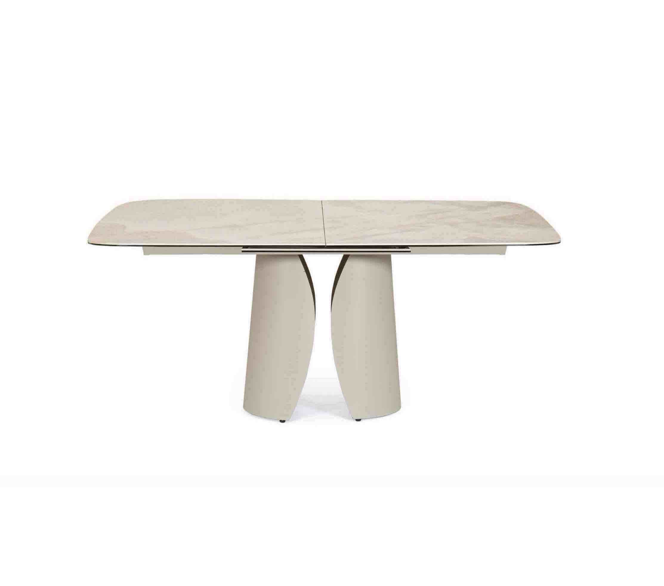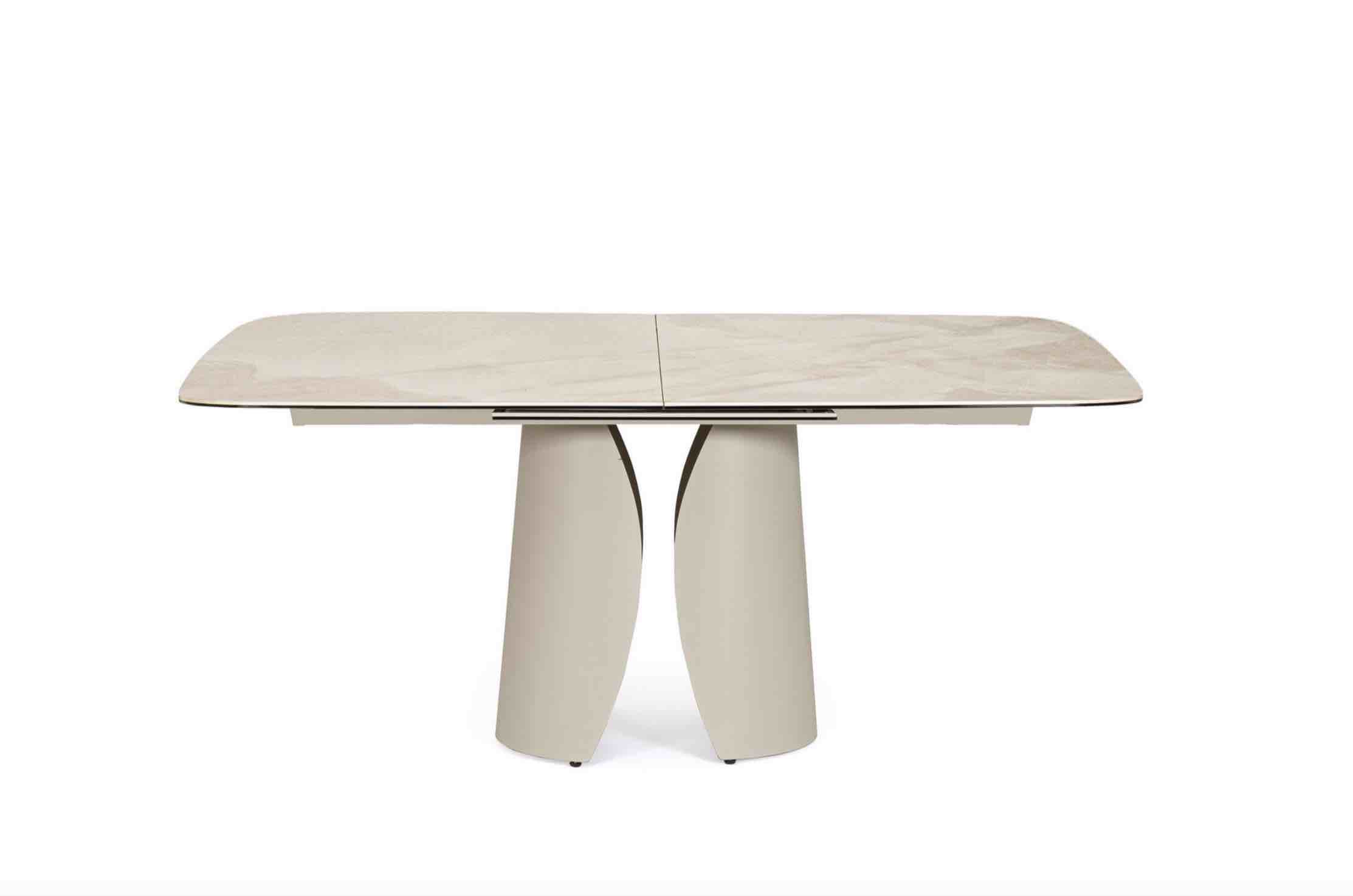 Tavolo Ardis piano in ceramica effetto onice lucido e base in acciaio verniciato a polvere epossidica colore beige, misura cm 180/240×95.